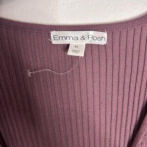This dress is sure to add some bit of sultry to your wardrobe. Made by Emma & Posh this mauve knit dress has a surplice neckline and a black tie-up detail on the side. It's designed like a wrap dress and has a lot of stretch. It is a size XL and is new without tags.