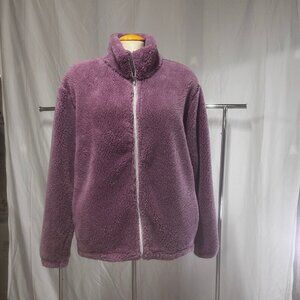 Mauve Teddy Zip-Up Jacket, Sz L NWOT