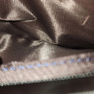 This is a brand new, never used long, tri-fold wallet in a mauve-brick color. The front has a non-functional buckle accent but this doubles as the snap pull, which is functional. There are 10 credit/debit card slots and an interior, zippered change compartment.