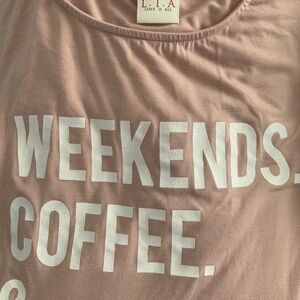 Weekends, Coffee ☕️ & Dogs 🐕 three of my absolute favorite things except I also love kitty cats too. Lol. These tees are awesome and a little on the big size. Not form fitted is what I mean. Wider neck and sleeves are wide open as opposed to a regular T-shirt.