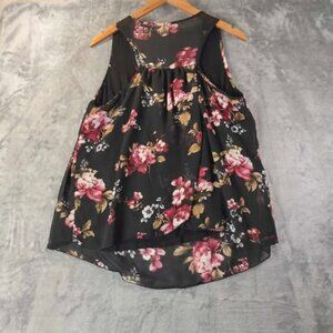 Mauve Women’s Floral Sleeveless 1X Black Pink Sheer Layered Boho Everday Top
