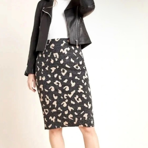 Stylish and sophisticated pencil skirt from Mauve by Anthropologie featuring the Delphine leopard print in black, gray, and cream tones. Designed with a flattering fit, side zip closure, and fully lined for comfort and structure.