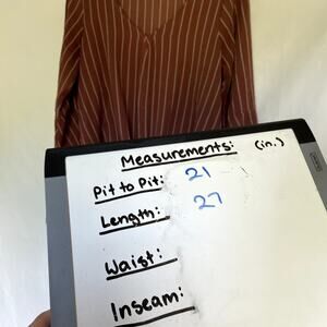 Add a touch of elegance to your wardrobe with this beautiful mauve pink striped blouse. Featuring a flattering v-neck and delicate flutter sleeves, this long-sleeved top is perfect for both casual and dressy occasions. The size L ensures a comfortable and stylish fit. Don't miss out – make it yours today!