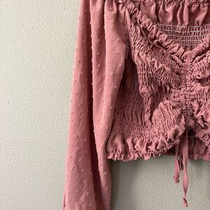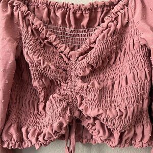 Pretty mauve long sleeve blouse by Shein. Ruching on the front. Size 1X. In great condition! C1