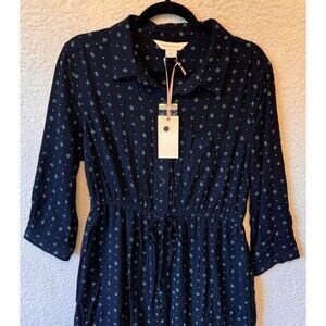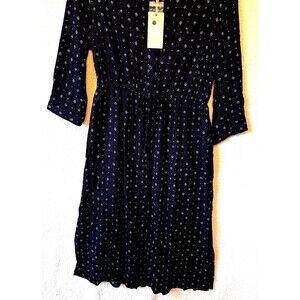 Mauvette Dress Medium Navy Long Sleeve Pockets Elastic Waist NWT NEW