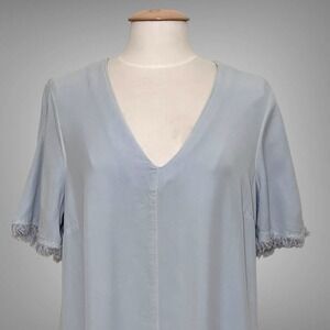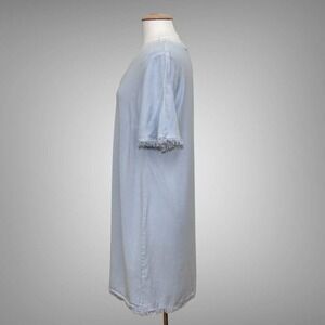 Maven West Womens Dress L Light Chambray Blue Frayed Shift Classic Casual Beachy