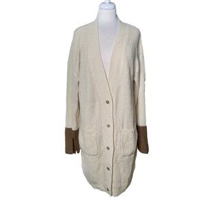 Maverick Size S Cream & Brown Oversize Long Button Up Cardigan