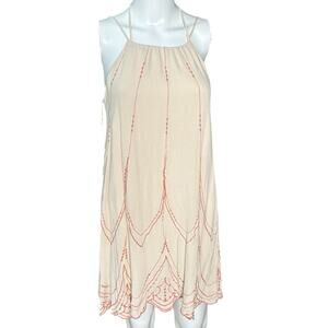 Maverick Sz S Boho Embroidered Rayon Mini Dress Cream Pink Beach Resort