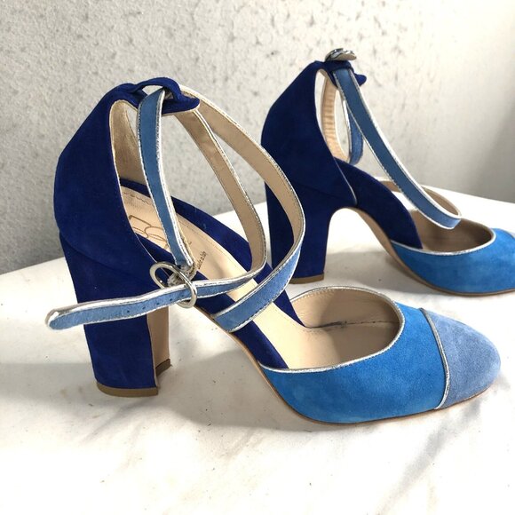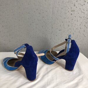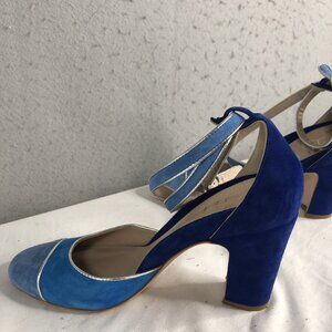 Mavette Shoes Womens 7.5 Blue Suede Nala D'orsay Pump Round Toe Silver Piping
