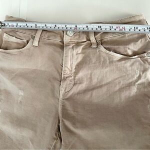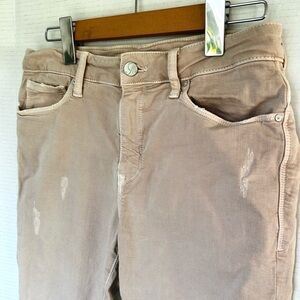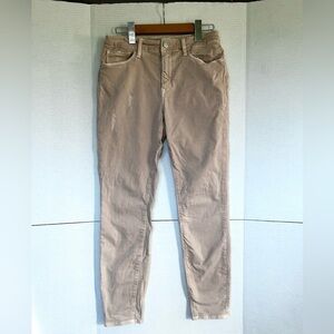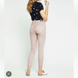 Crafted in a soft, stretch denim, this ankle-grazing silhouette offers such a variety of wardrobe options! You will seriously want to live in these! Skinny Ankle High Rise Solid pink twill with slight washing, slightly distressed