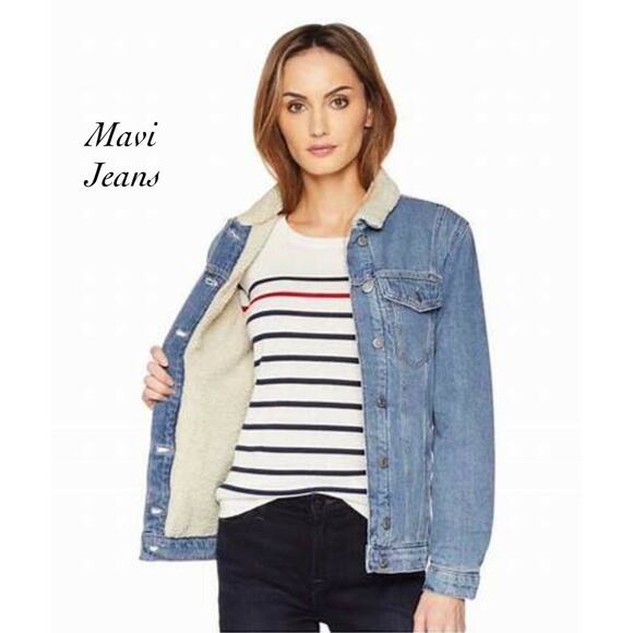 Mavi Jeans Co. Karla Sherpa Denim Jacket NWOT Size S