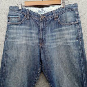 Mavi Jeans Mens 34x32 Blue Distressed Whiskering Straight Leg Classic Fit Cotton