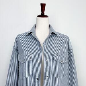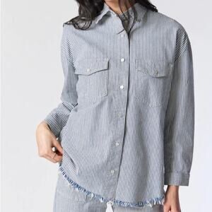 Small (very oversized) Mavi Livia shacket. Striped denim fabric with some stretch. Raw, frayed bottom hem. Two front pockets. Snap closures. Great condition!