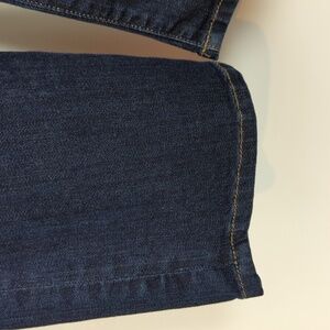 Dark wash.  Five pockets.  Zip fly, button closure.  Excellent condition -- no stains, holes, or fraying. Laid flat waist: 17.5in. Rise: 10.5in. Inseam: 28in.