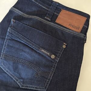 These Mavi jeans feature a timeless straight-leg cut in a rich blue hue, offering a versatile and stylish look. The denim is crafted for a comfortable fit, making them perfect for everyday wear. With a subtle worn-in appearance, these jeans maintain a clean and polished style.