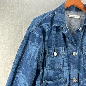 Mavi x Istanbul Women Denim Jacket Small Blue Maya Landscape Long Sleeve Trucker