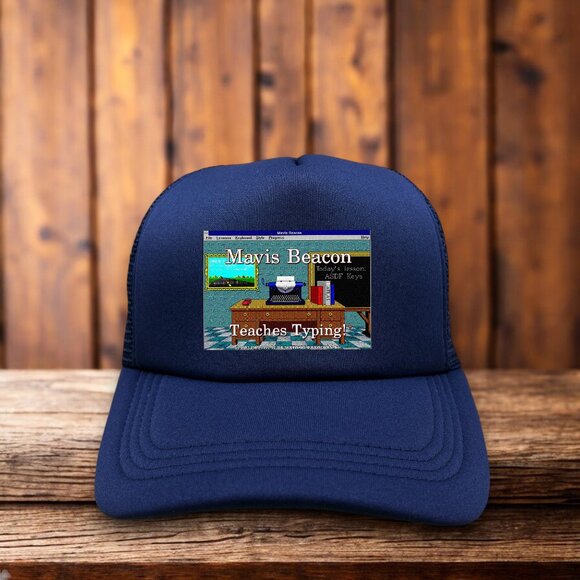 Mavis Beacon Unisex Trucker Hat Navy Snapback 80s Retro Nostalgia Typing Cap