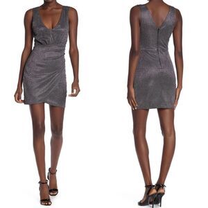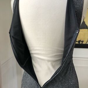 Glitter construction gives a glam touch to this mini length dress. - V-neck - Sleeveless - Back zip closure - Wrap style skirt - Glitter construction - Lined - Mini length - Approx. 33" length- Machine wash