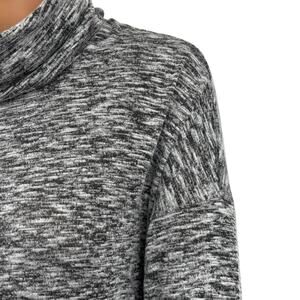 This pullover dress features a relaxed, draped design with a roomy funnel neck and eye-catching heathered knit.