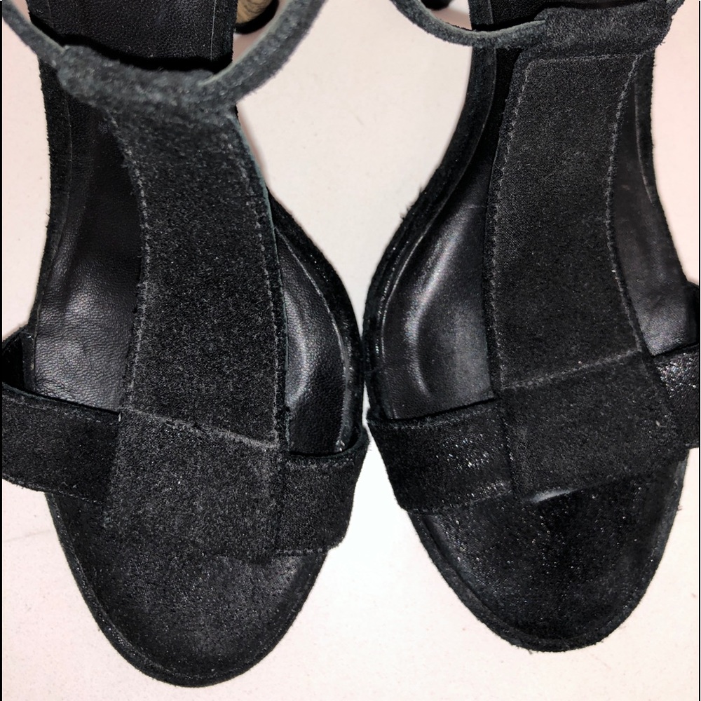 Size 37.5 fits size 7-7.5 heel height 5” platform 1” clean excellent condition Very 80s!