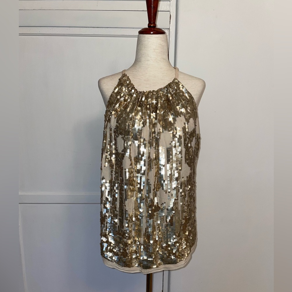Gold sequin halter top! XXS runs big! - more like a small. Tie neck. Sequined