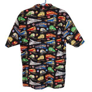Max Boxxer Mens L Black Train Print Short Sleeves Cotton Button Up Shirt Pocket