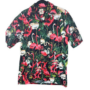 Max Boxxer Men’s Medium Hawaiian Shirt Flamingo Print Short Sleeve Vacation Top