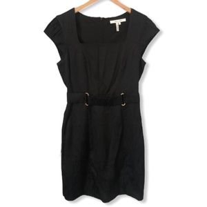Max & Cleo Black Dress w Gold Belt. NWT. SZ 4 - Great wardrobe addition that works for every season! Square neck, back zipper, cap sleeve. Gold built in belt. Very Flattering, very easy to wear. 70% Polyester. Brand new with tags.