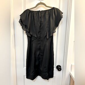 Max & Cleo Black Silk Ruffle Cape Sleeve Dress Size 8