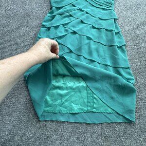 The dress is available in size 4 and comes in a beautiful green color, perfect for the holiday season.