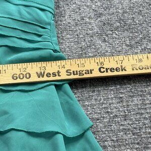 Step out in style with this stunning Max & Cleo dress, perfect for any formal occasion. The dress features a unique one-shoulder neckline and is made from a lightweight chiffon material, which provides a comfortable and flowy fit. The dress is accented with ruffle details and layered for added volume.