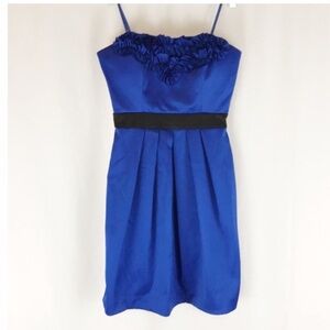 Beautiful sapphire blue color with a slimming black band along the waist.