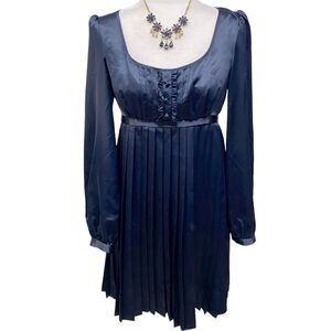 Max & Cleo Satin Navy Dress With Pleated Skirt