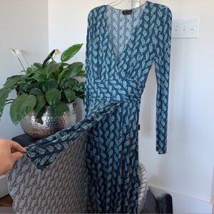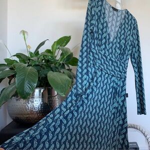 Max & Cleo Wrap maxi/long dress Sz M V neck long sleeves Blue Navy Green