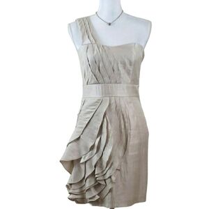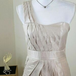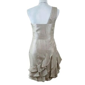 White/Beige Shine Ruffle Dress Asymmetrical Neck Evening Party.