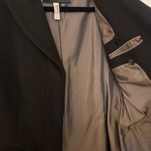 Timeless black top coat by Max & Co. Made in Italy from wool and cashmere Features a sleek design with button closure. Perfect for elegant layering. Fully lined in like new condition.