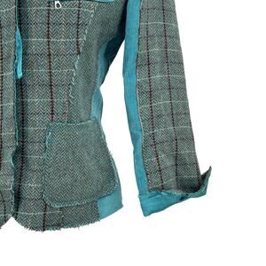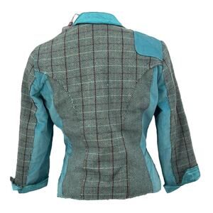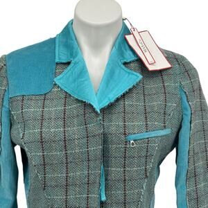 Max & Co Patchwork Blazer Wool Mohair Women 10 Blue Plaid Preppy Steampunk NEW