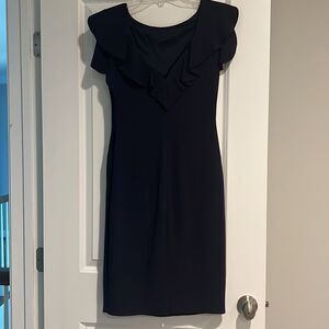 Back has deep V. Fits well regular size 2 and high end size 4.