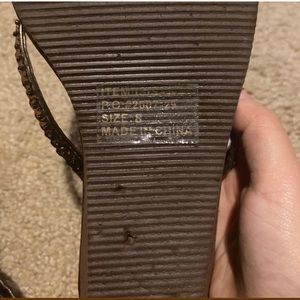 Size 8. Very pretty max collection wedges in guc. Roughly a 2-3” wedge but let me know if you’d like me to get exact measurements. Reach out to me with questions:)