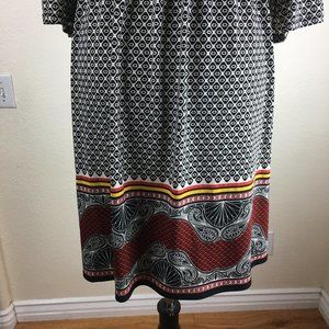 Max Edition Boho Style Peasant dress with a cinched waist and cinched ruffled sleeves. Such a great addition to your wardrobe! If you go to work every day this one will be an easy one and done dress. Looks great with boots, platforms, or flats!