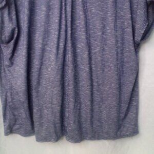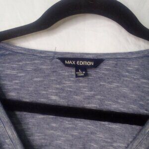 Max Edition Blouse L Short Sleeve Button Front Tie Hem V-Neck Blue