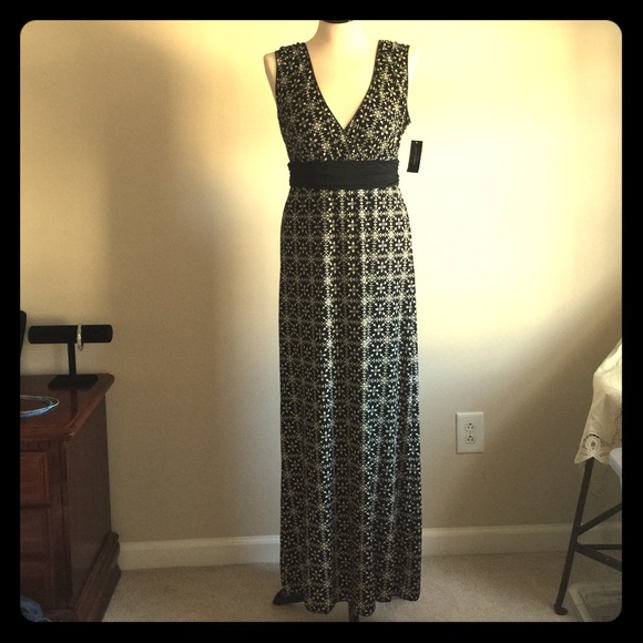 NWT Max Edition black & cream maxi dress. Polyester/spandex blend. Approx 56" long when measured from top of shoulder. Size large.