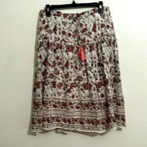 Max Edition White with pink floral print and pink tassels full skirt with elastic waistband fully lined