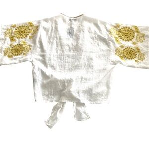Max Edition White V-neck Blouse Size Medium Embroidered Boho Short Kimono Sleeve