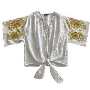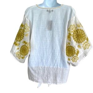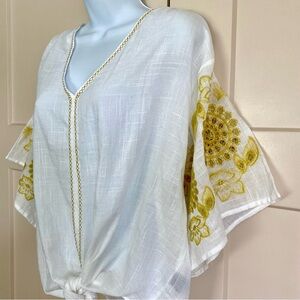 NWT Max Edition White V-neck Blouse Size Medium Embroidered Short Kimono Sleeve Summer