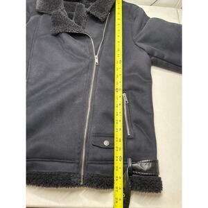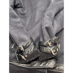 Max Edition Women's Faux Shearling Moto Biker coat in black. Size L