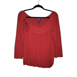 Max Edition Women's Red Scoop Neck Rosette Detail Soft Viscose Blouse Size L