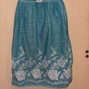 In excellent preowned condition. MIDI length dress, Lacey detail around neck. Pit to pit 19” inches and length is shoulder to hem 38”. All are appropriate.