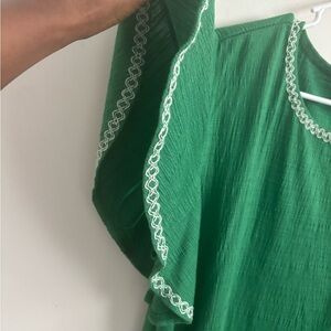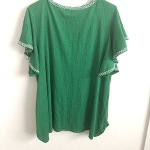 Max Green Flutter Sleeve Top Boho Cottagecore Embroidered Trim Blouse Vibrant 3X