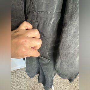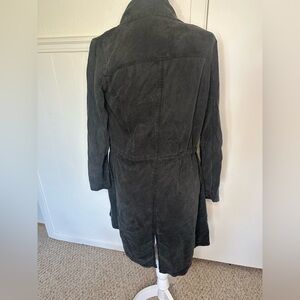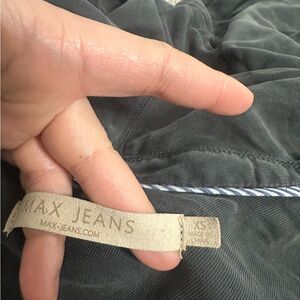 EUC. Pockets are still stitched. Experience timeless elegance with the Max Jeans Black Trench Coat, featuring a sophisticated shawl collar and a relaxed, draped fit. Crafted from a soft, textured fabric, this coat extends to mid-thigh, offering a chic silhouette. Ideal for layering, it adds a touch of refinement to any ensemble.